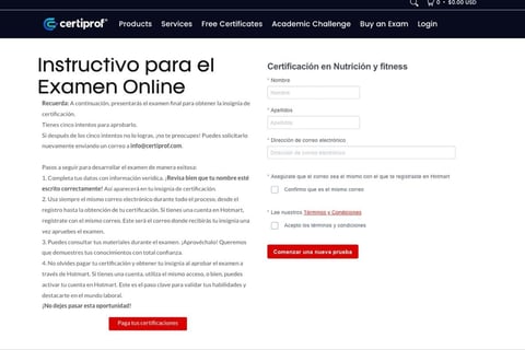 6.- Llegaste a Certiprof(excelente): Lee atentamente las instrucciones, haz el pago correspondiente de tu certificación ($ 297.oo), luego rinde tu exámen.